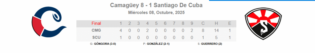 Dariel Góngora hizo otra de sus salidas de calidad en seis episodios y solo toleró una carrera limpia, además de ponchar a cinco rivales . La alineación de bateadores le respaldo, regresó por todo lo alto Alexander Ayala, tras irse de 42, con par de dobletes. Como ya es costumbre también destacaron Lionel Moas Jr., Yordanis Samón y Luis González Azcuy, los miembros de la parte alta del ataque.