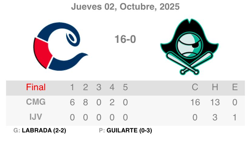 El lanzador abridor Yasel Labrada dejó a los pineros en tres imparables y tuvo un respaldo ofensivo donde destacó Leonel Moas, Rafael Álvarez y Samón, con más de un imparable y un doblete como extrabase cada uno.