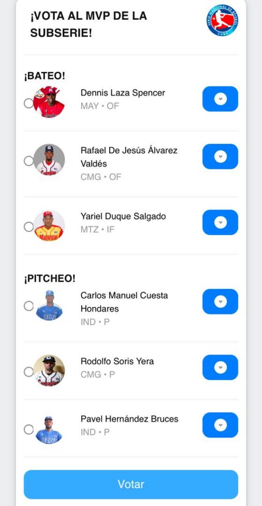 En los diferentes departamentos no sobresale ningún camagüeyano como líder. Sin embargo, en la boleta de jugador más valioso de la semana aparecen entre los candidatos dos jugadores.